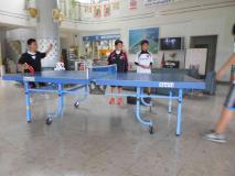 5月10日 日曜日 サッカー大会の帰りにスポーツ指導センターに立ち寄ったサッカー少年たちが、大変楽しそうに卓球競技に夢中になっていました。